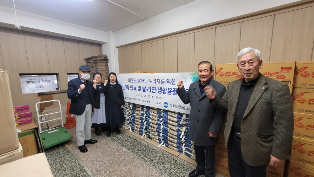 2025-04-07 작성자: 관리자 우리신용정보 미혼모, 장애인, 노약자를 위한 사랑의 쌀 라면 지원 2025년 4월 3일 11:00 사단법인 한국사랑나눔공동체 이은덕 이사장은 우리신용정보(주) 후원으로 미혼모, 장애인, 노약자를 위한 사랑의 의료 및 쌀 라면, 생활용품를 지원하는행사를 가졌다. 우리신용정보-쌀나눔1.jpg(346.67 KB)