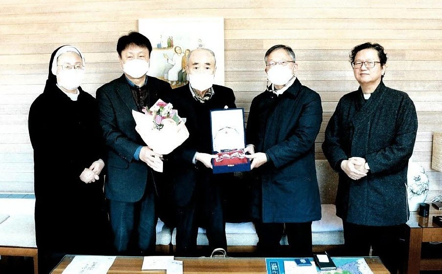 2022-03-07 작성자: 관리자 가톨릭 춘천교구 김주영 시몬 교주장으로 부터 감사패 수훈 2월 18일 가톨릭 춘천교구 김주영 시몬 교구장으로 부터 (사) 한국사랑나눔공동체 이사장 이은덕은 감사패를 수훈 하였다. 감사패 전달식에는 춘천교구 김학배 신부님, 수녀님, 상임이사 도재식이 참석하였고, 가톨릭 춘천교구 관할 사회복지 시설에 의약품 등을 7년에 걸처 지원한 고마움의 표시로 감사패를 받았음. 춘천교구.jpg(155.94 KB)