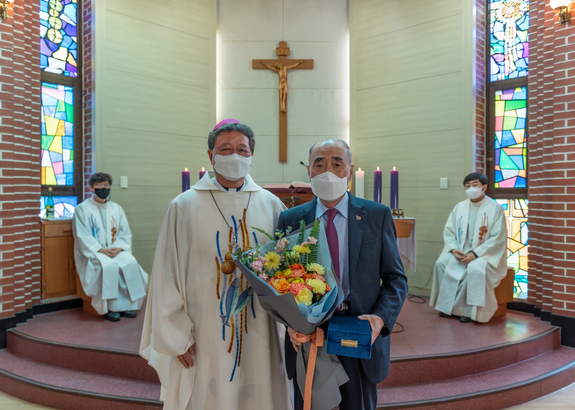 2021-12-15 작성자: 관리자 감사패 받음 2021. 12. 7. 11시 (사)한국사랑나눔공동체 이사장 이은덕 도마는 천주교 안동교구 교구장 권혁주 주교님으로부터 안동교구 관내 사회복지시설(장애인, 노약자, 다문화 가족)에게 의약품(영양제)등을 지원함으로써 감사의 뜻으로 감사패를 받았다.
