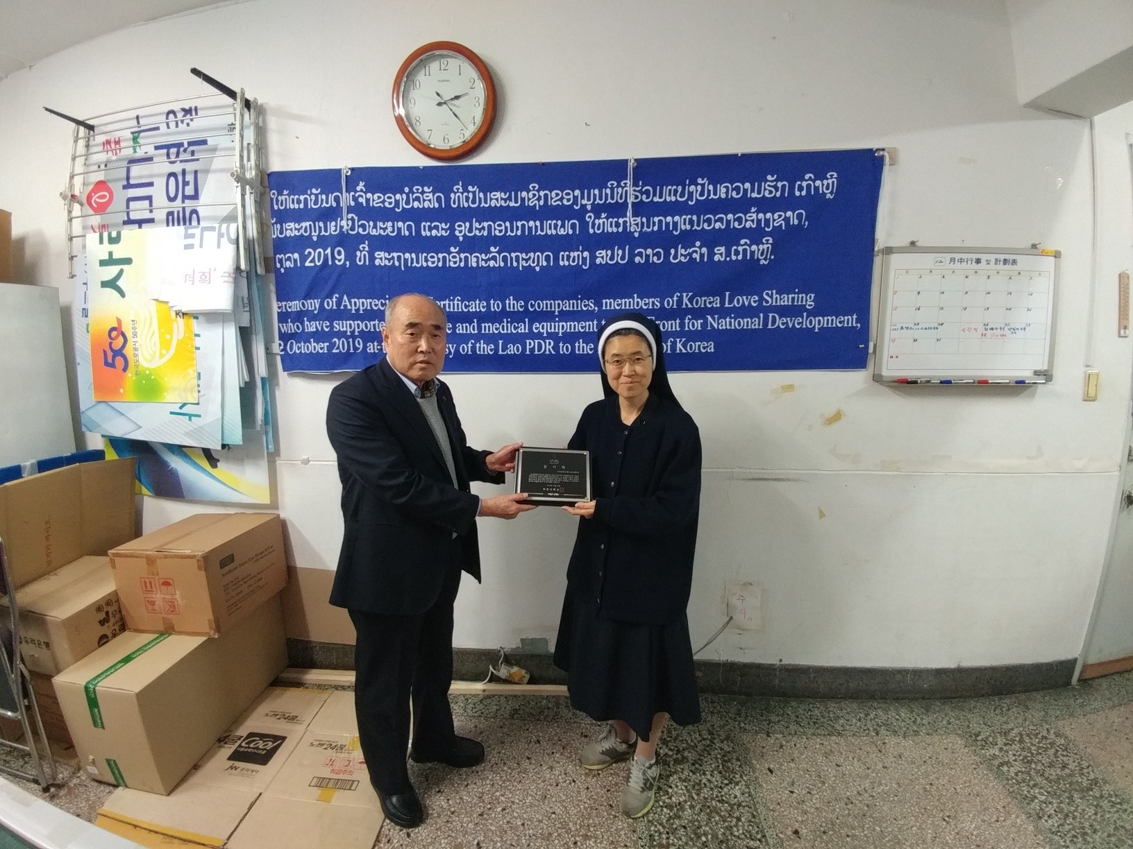 2020-01-03 작성자: 관리자 감사패 전달식 2019년 12월 24일 자오나학교에서 (사)한국사랑나눔공동체(이사장 이은덕)에 그동안 후원해 주심에 감사함에 대한 감사패 전달식이 있었다