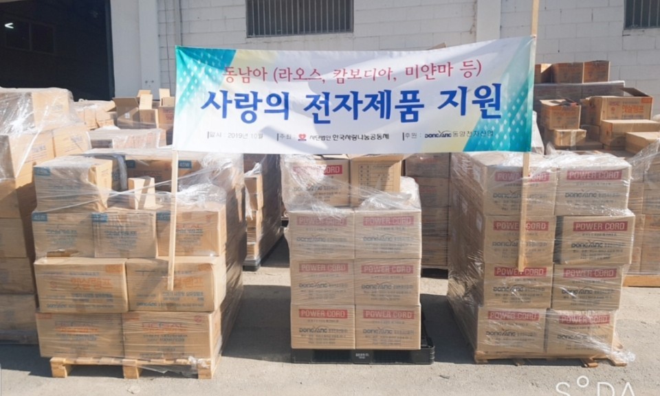 2019-11-05 작성자: 관리자 동양전자산업(주)의 동남아시아 후원 행사 (사)한국사랑나눔공동체(이사장 이은덕)는 동양전자산업(주)로부터 전기기자재(전구, 콘센트등)를 후원받아 동남아시아(캄보디아,라오스등)에 지원하였다.