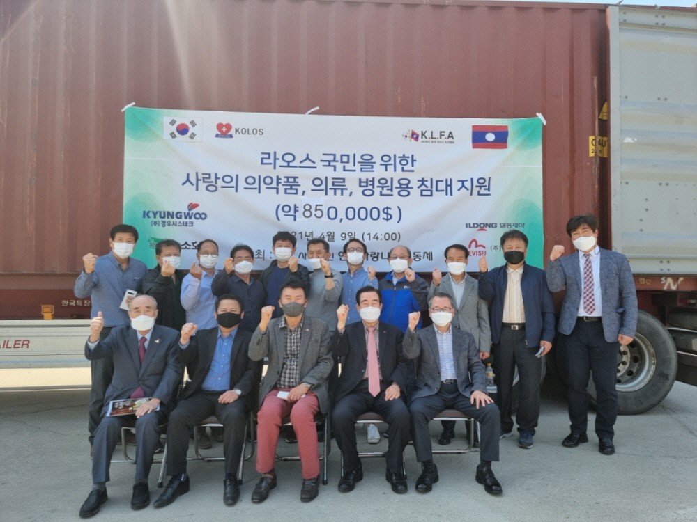2021-05-03 작성자: 관리자 라오스에 사랑의 의약품 및 의료용품, 의류 지원 (사)한국사랑나눔공동체는 4월 9일 고양시 일산동구에 소재한 우진수출포장에서 이은덕 이사장, 주한 라오스대사관 캄아이 영사, 한국라오스친선협회 오명환회장, 경우시스테크 최성호 상무 등이 참석한 자리에서 ' 라오스 국민을 위한 사랑의 의약품, 병원용 침대, 의류' 를 라오스에 보내는 선적식을 하였다. 경우시스테크, 소화, 일동제약,종근당, 월비통상 등이 후원한 약85만달러 상당의 물품을 4월 17일 배편으로 보냈다. 라오스 선적1-1.jpg(151.27 KB)