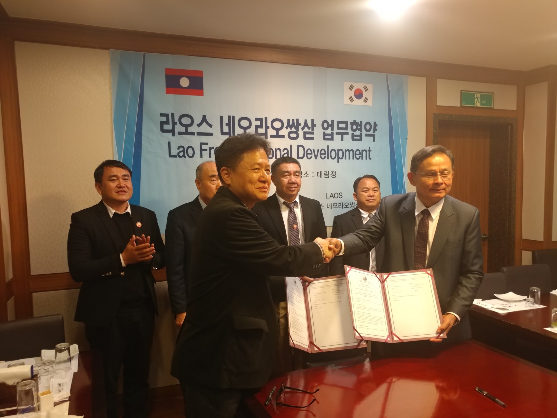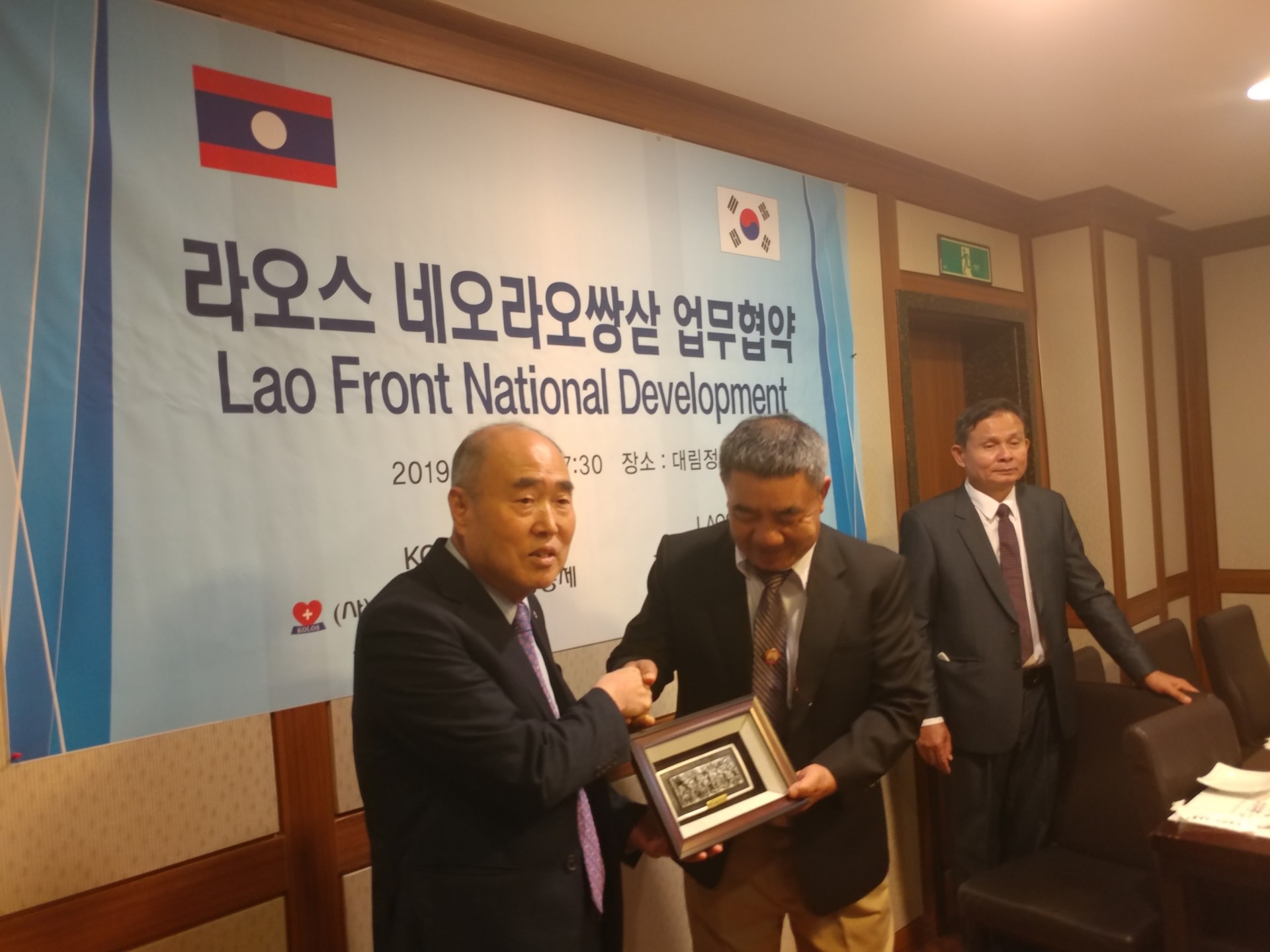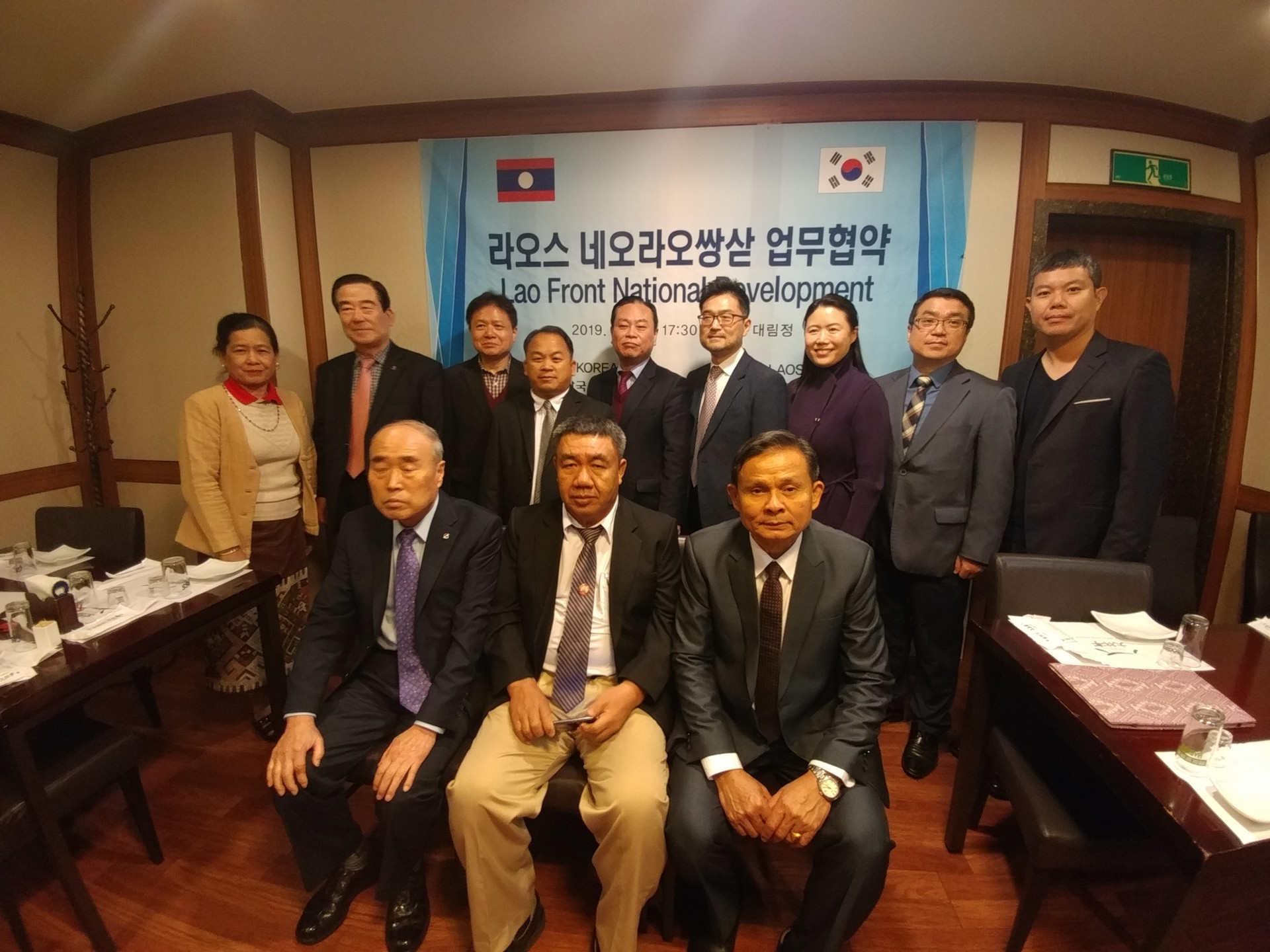 업무협약후 사진사) 한국사랑나눔공동체 이은덕 이사장은 2019. 3. 28 17:00시 라오스 네오라오 쌍싿(국가발전위원회) 쌍쑤판 쎙싸완 고문(장관급), 짬펭 쑫티윙 사무총장(차관급), 국장급3명, 백총명(한국사랑니눔공동체)라오스지부장 6명과 함께 일동제약(주) 서진식 최고운영책임자, 최규환 전무, 김명현 해외사업부 상무등 임원과 라오스에 의약품 제조기술 지원 등을 협의하고, 29일 오전에는 여의도 국회 방문 전혜숙 국회의원(여성가족위원장)과 오찬 겸 라오스국가에 의료, 의약품등 지원방안을 토의하고, 14시에는 한국국제보건의료재단을 방문 추무진 이사장과 의료지원 방안을 논의하고, 17시에 대림정에서 (사) 한국사랑나눔공동체와 라오스국가발전위원회가 업무협약을 체결하고 많은 의견교환과 만찬을 마지막으로 함께 선물교환 기념촬영과 동시에 행사를 마감하였다.