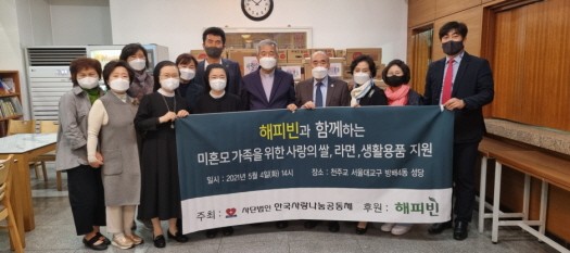 2021년 5월 4일 방배4동 성당에서 천주교 서울대교구 미혼모기금위원회 이동익 신부에게 신한가족만원나눔(해피빈)에서 후원한 기금을통해 쌀, 라면을 구입하여 기금위원회 산하 등록시설에 지원하였고, 은혜의집 등 아동보호시설등에 각각 지원하였습니다