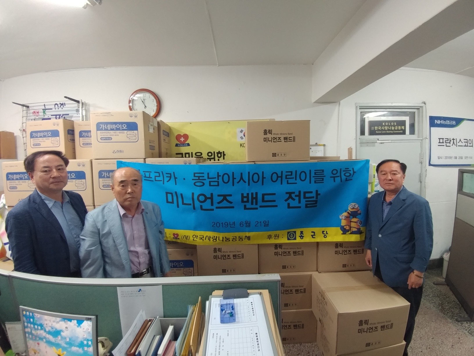 2019-06-21 작성자: 관리자 아프리카 및 동남아 어린이를 위한 행사 2019년 6월 21일 (사) 한국사랑나눔공동체(이사장 이은덕)는 종근당에서 후원한 미니언즈 밴드를 아프리카 및 동남아 어린이를 위하여전달하였다
