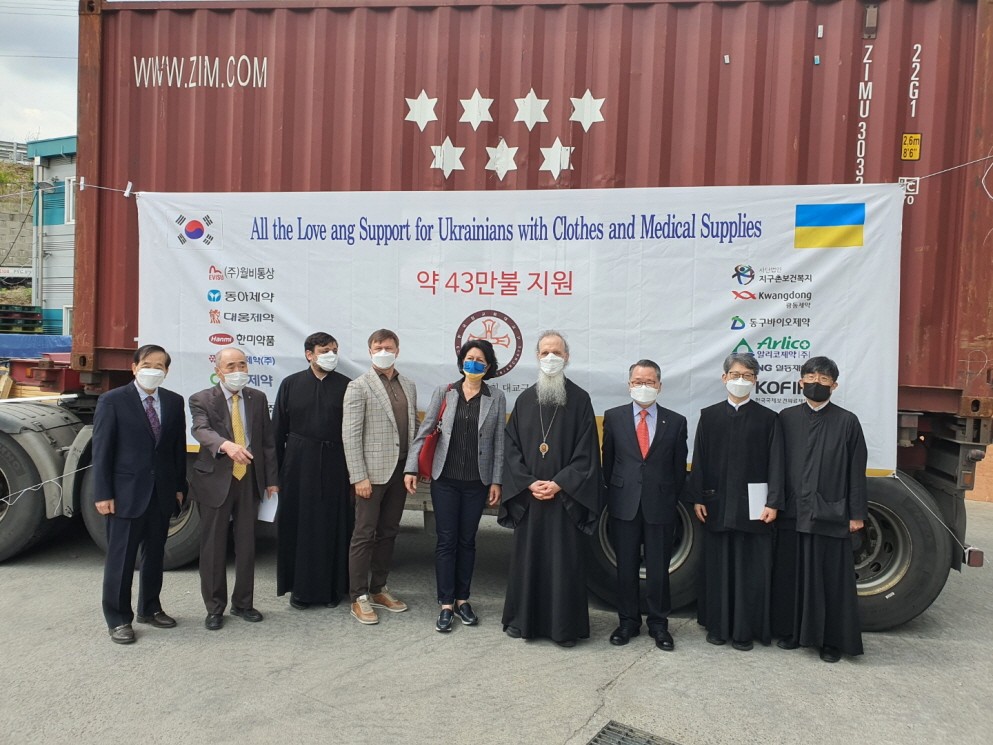 43만달러 상당의 이번 물품은 한국정교회가 주선한 우크라이나 사회봉사단체 ELEOS(그리스어로 자비를 뜩함)을 통해 우크라이나 피난민에게 전달될 예정이며, 후원물품은 지구촌보건복지회, 한국국제보건의료 재단과 동아제약등 11개 제약회사 및 월비통상에서 의류 등을 후원하였음.