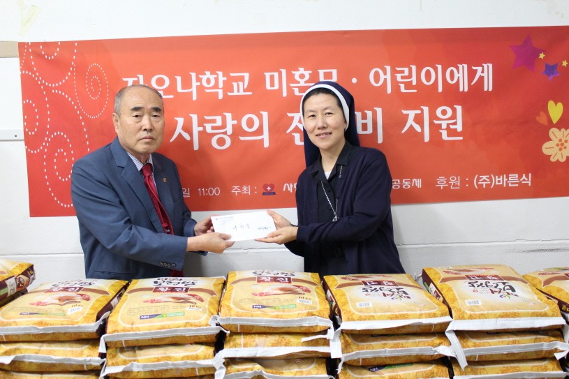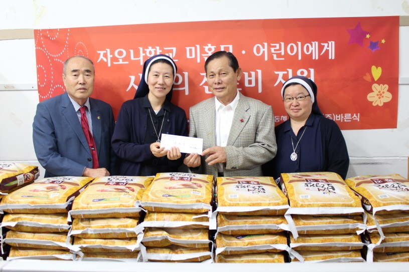 2017-11-01 작성자: 관리자 자오나학교 (미혼모 보호시설)앞 사랑의 진료비 전달 한국사랑나눔공동체는 본 공동체의 고문인 (주)바른식 김천수 회장의 후원으로 미혼모 보호시설인 자오나학교에 치과 및 안과 진료에 필요한 진료비를 전달하였다