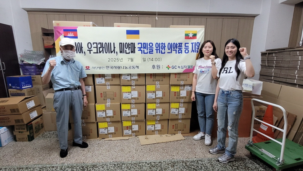 2025-07-01 작성자: 관리자 캄보디아, 우크라이나, 미얀마 국민을 위한 의약품등 지원 7월 1일 사단법인 한국사랑나눔공동체 이사장 이은덕은 GC 녹십자웰빙에서 협찬으로 캄보디아, 우크라이나, 미얀마 국민을 위한 의약품등 지원하는 행사를 가졌다. 캅보디아 우크라이나 미얀마 지원.jpeg(386.44 KB)