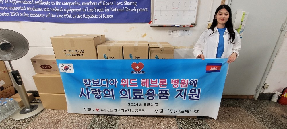 2024-06-04 작성자: 관리자 캄보디아 위드헤브론 병원에 사랑의 의료용품 지원 사단법인 한국사랑나눔공동체 이은덕 이사장은 2024년 5월 31일 주식회사 리노메디칼이 지원한 의료용품을 캄보디아 위드헤브론에 지원하는 행사를 가졌다 리노메디칼.jpg(335.25 KB)