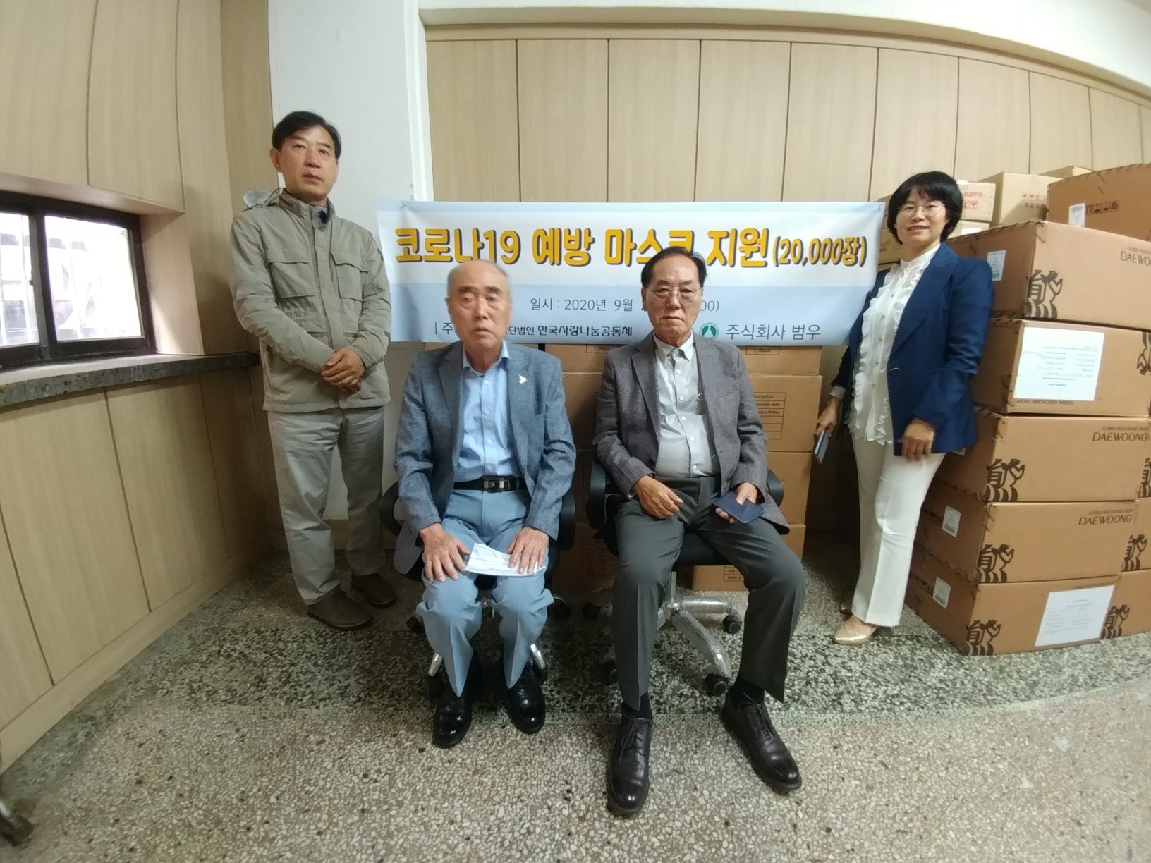 2020-09-28 작성자: 관리자 코로나 19 예방을 위한 마스크 지원 (사)한국사랑나눔공동체(이사장 이은덕)는 (주)범우(회장 송옥헌)에서 커로나19 예방을 위하여 기증한마스크 2만장을 지원받아 어려운 시설에 전달할 예정이다.