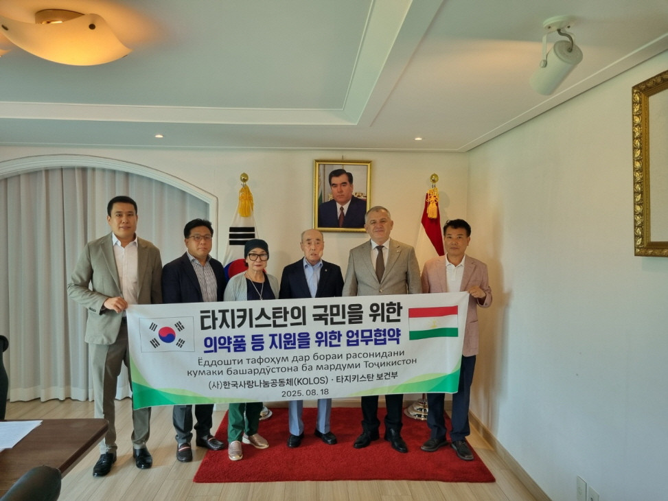 2025-08-19 작성자: 관리자 타지키스탄의 국민을 위한 의약품등 지원을 위한 업무협약 2025년 8월 19일 사단법인 한국사랑나눔공동체 이은덕 이사장은 오후 2시 주한 타지키스탄 대사관에서 타지키스탄 정부 산하 보건부를 대신하여 주한 타지키스탄 키롬살로히딘 대사가 참석하여 타지키스탄의 국민을 위한 의약품등 지원을 위한 업무협약식을 하였다. 터지키스탄 업무협약1.jpg(300.05 KB)