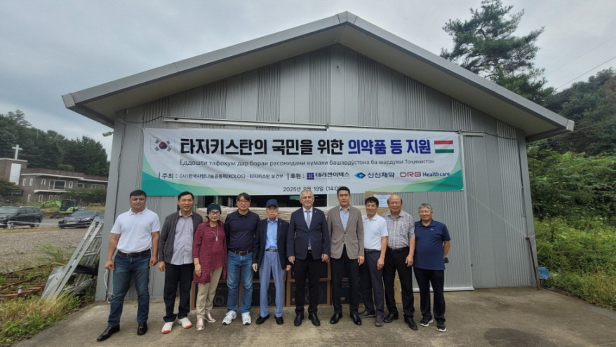 2025-09-22 작성자: 관리자 타지키스탄의 국민을 위한 의약품 등 지원 선적식 2025년 9월19일 사단법인 한국사랑나눔공동체 이은덕 이사장은 경기도 영평군 소재 창고에서 주한 타지키스탄 키롱살로히딘 대사을 비록하여 후원사 대표 및 임원이 참석한 하여 타지키스탄 국민을 위한 16억 상당의 의약품 등 지원하는 선적식을 가졌다 타지키스탄-선적식.jpg(259.24 KB)