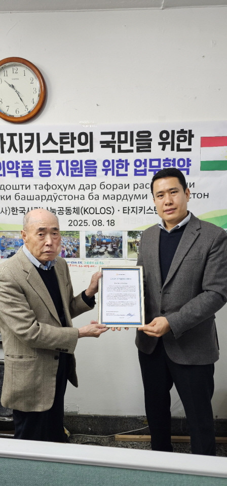 2025-12-04 작성자: 관리자 타지키스탄 오리욘 뱅크로 부터 감사장 수훈 2025년 12월 4일 10시 한국사랑나눔공동체 이은덕 이사장은 타지키스탄 오리온뱅크 한국지사장 보보예프 루스탐존으로 본사의 하산 아사둘로조다 이사회의장을 대신하여 타지키스탄의 물품후원등 감사의 표시로 감사장을 받았음. 감사장-ORIYONBONK.jpg(233.89 KB)
