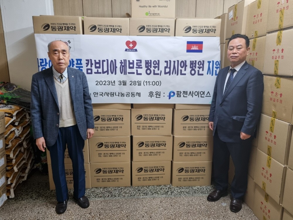 2023-04-04 작성자: 관리자 팜젠사이언스 캄보디아 헤브론병원, 러시안병원에 사랑의 의약품 후원 사단법인 한국사랑나눔공동체 이은덕 이사장은 3월 29일 법인사무실에서 팜젠사이언스후원으로 캄보디아 헤브론병원, 러시안병원에 사랑의 의약품을 지원하였다 팜젠사이언스1.jpg(432.54 KB)