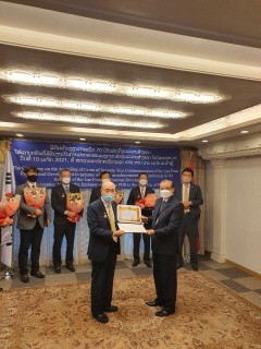 2021-11-22 작성자: 관리자 한국사랑나눔공동체는 라오스 정부로 부터 우호훈장 수훈 2021년 11월10일 한국사랑나눔공동체는 주한 라오스대사관에서 라오스 국가발전전선 70주년 기념 우호훈장을 받았다. 한국사랑나눔공동체는 2017년 앗타퓨 지역의 댐사고 이후 올해까지 1천만불 상당의 의약품, 의료장비, 의류, 생필품 등을 지원하였고, 지원에 기부한 일동제약 윤웅섭 대표, 경우시스테크 장세권 회장, 소화 윤대명 대표 등 6명이 우호 훈장을 받았다. 훈장.jpg(82.02 KB)
