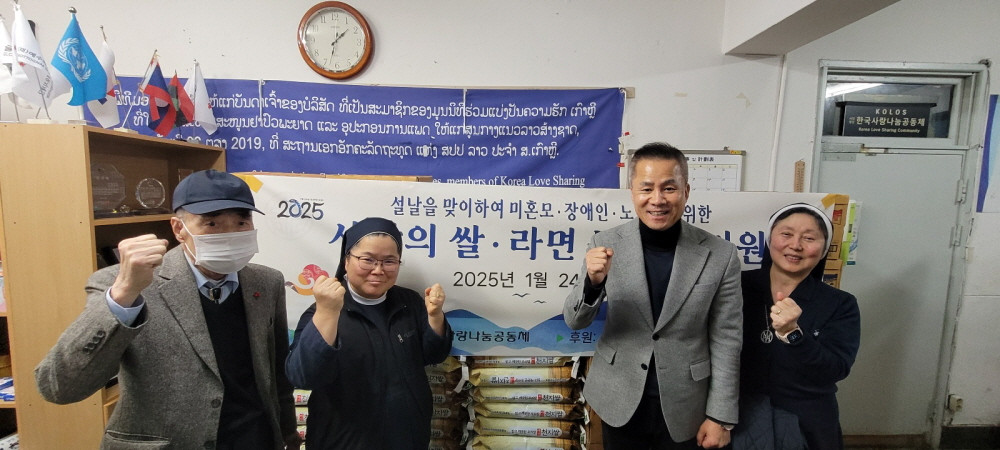 2025-02-05 작성자: 관리자 2025년 설맞이 미혼모, 장애인 등 사랑의쌀 라면 지원 2025년 1월24일 사단법인 한국사랑나눔공동체 이은덕 이사장은 사단법인 대한민국국가조찬기도회(이봉관 회장)로 부터 쌀 라면을 지원받아 설 맞이하는 미혼모, 장애인 등에게 지원하는 행사를 하였다 조찬기도회-쌀 행사-복사.jpg(288.51 KB)