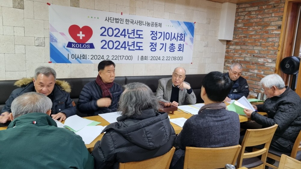 2024-02-23 작성자: 관리자 2024년 정기이사회 및 총회 개최 사단법인 한국사랑나눔공동체 제 8기 2023년 사업년도 이사회 및 총회를 2월22일 개최하였다 이사회 및 총회 심의안건은 다음과 같음 1안 2023년 결산(안) 2안 2024년 사업계획(안) 3안 임원 선임 신임 이사 천 명 훈, 김우종, 진은경 첨부 : 2023년 정기 이사회 및 총회자료 2024년도 제1차 정기 이사회 및 정기총회 자료.pdf(3.9 MB) 정기총회 이사회1.jpg(361.05 KB)